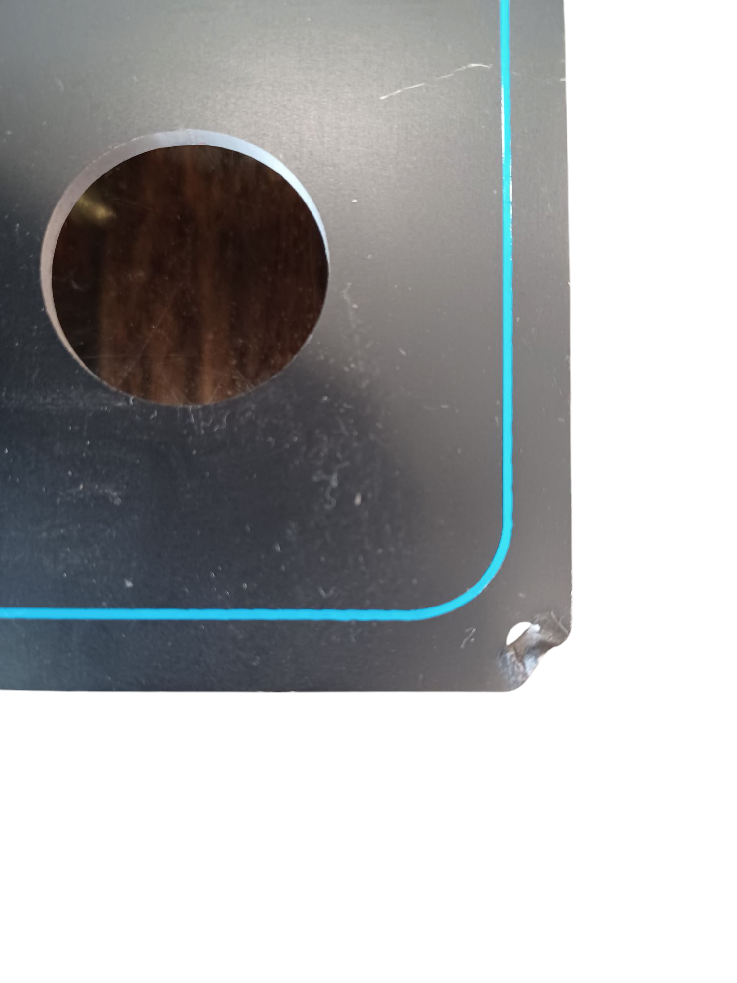 hoekje bevestigingsgaatje beschadigd, zie foto
